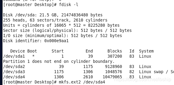 重启之后,输入fdisk -l可以看到刚才新建的分区是sda4已经新建好了。
